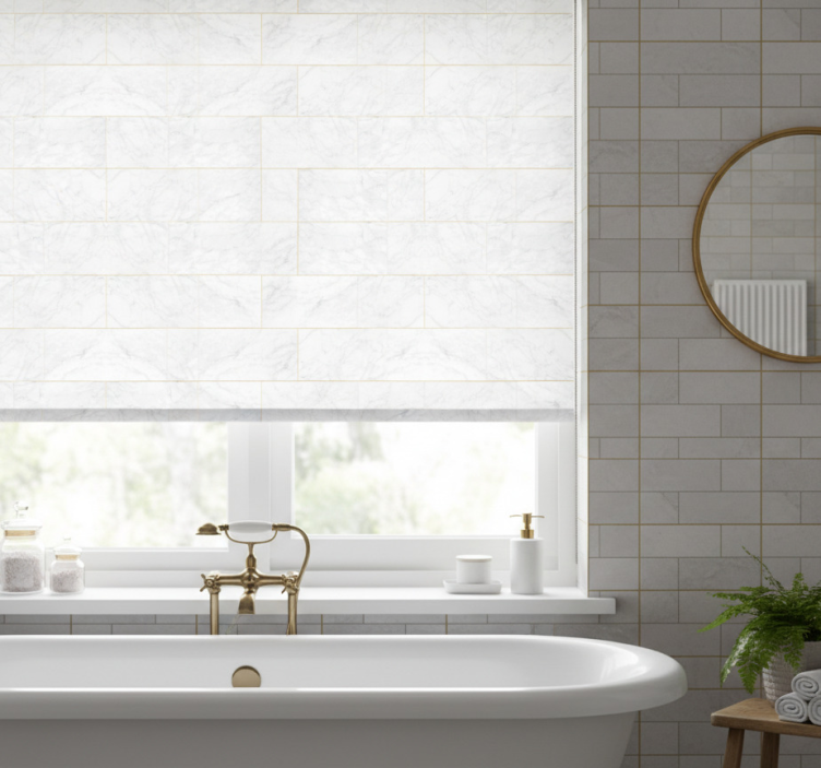 The Bathroom blind in gray tones with gold marble bathroom blind is not just a functional item; it's a statement piece that elevates your bathroom decor. Imagine the ambiance it creates, effortlessly fusing elegance with contemporary flair. This blind enhances your space, making it feel more luxurious and inviting. It’s perfect for those who appreciate aesthetics and functionality, ensuring your bathroom is not only stylish but also practical!