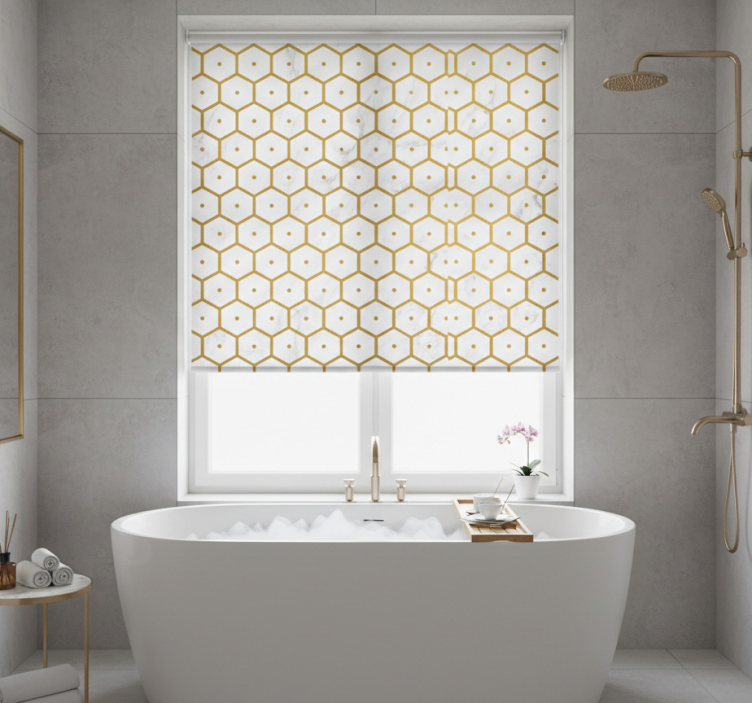 - Bathroom blind in hexagonal gold marble design