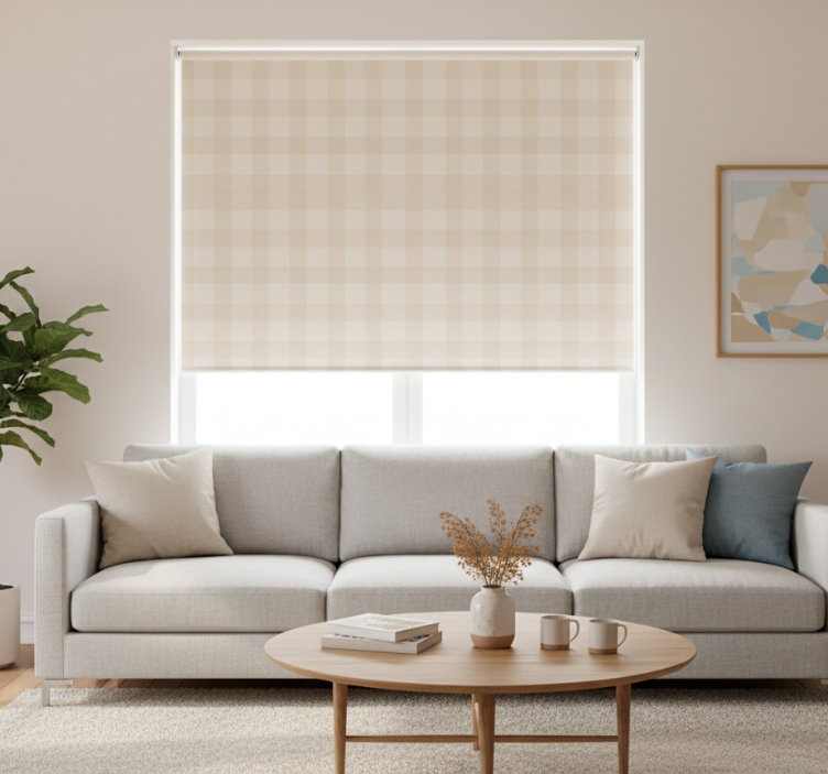 Reference: E8126The Blind beige beige pattern offers a stunning design that seamlessly blends elegance with functionality. Its soft beige hue, complemented by a subtle pattern, creates a warm and inviting atmosphere in any room. This roller blind is designed with features such as easy assembly in just two clicks, effortless cleaning, and quick disassembly, making it a practical choice for modern living. Additionally, it protects your space from direct sunlight while providing the privacy you desire, allowing you to enjoy your home comfortably.