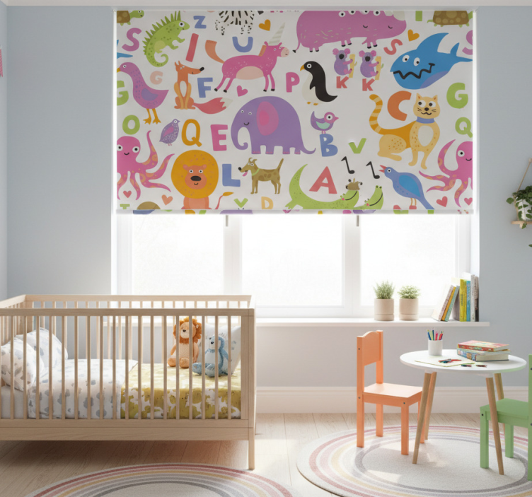 Reference: E6823Introducing our Blind children alphabet animals, a delightful and engaging way to brighten up any child's room! This unique design combines vibrant colors and adorable animal illustrations that capture the essence of childhood wonder. Each letter of the alphabet is represented by a charming animal, creating a visually stimulating environment that inspires learning and creativity. The roller blind is not only aesthetically pleasing but also boasts features like easy assembly in just 2 clicks, simple disassembly for quick cleaning, and customizable measurements to fit any window perfectly!