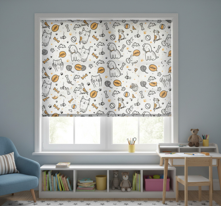 The Blind children pets cats and dogs doodle style blind children roller blind is perfect for decoration because it transforms any room into a joyful sanctuary. Its unique design inspires creativity and happiness, allowing children to enjoy a playful environment that stimulates their imagination. By incorporating this charming roller blind, you create a warm and inviting space that brings smiles and comfort to blind children and their families!