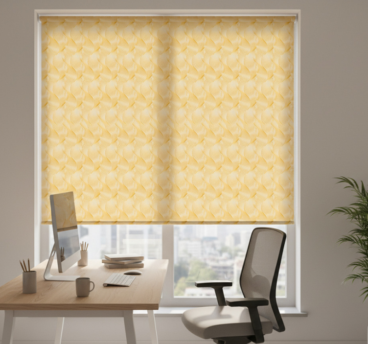 The Blind office gold foil wave illusion blind office is an exceptional choice for enhancing your workplace decor. Its striking design elevates the ambiance, creating a sophisticated atmosphere that inspires creativity and productivity. Imagine the compliments you'll receive from clients and colleagues alike! This roller blind seamlessly blends style and practicality, ensuring your office looks amazing while providing the privacy and light control you need.