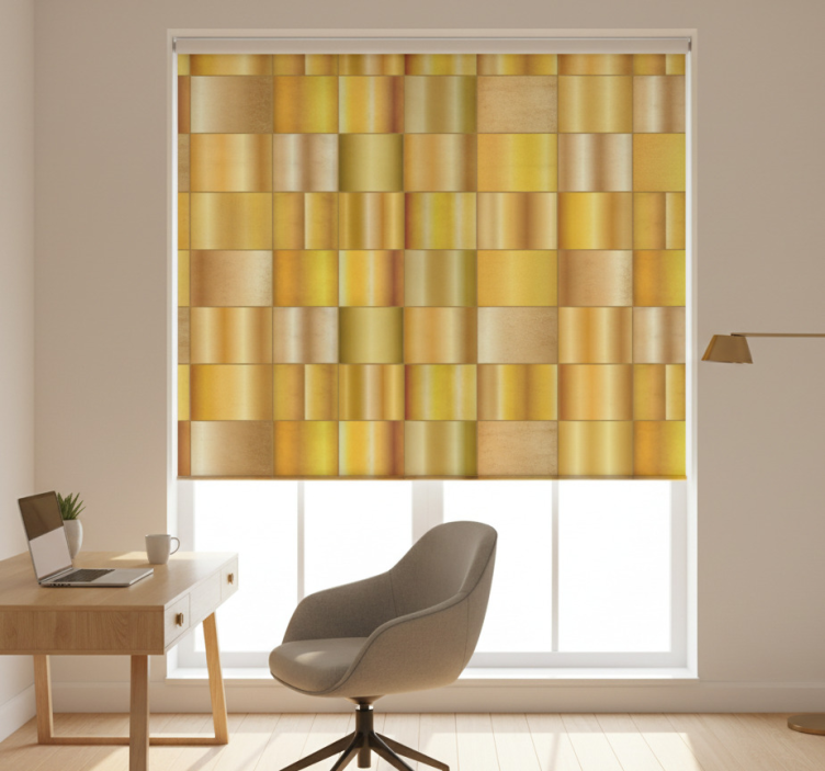 Reference: E7301Introducing our stunning Blind office golden yellow blocks, a perfect blend of style and functionality! This roller blind features a beautiful golden yellow design that enhances any workspace with its cheerful yet sophisticated aesthetic. The fabric is thoughtfully crafted to provide protection from direct sunlight while allowing you to regulate the room temperature. Not only does it improve the decoration of your office, but it also ensures privacy when lowered, giving you a serene environment to focus and create.