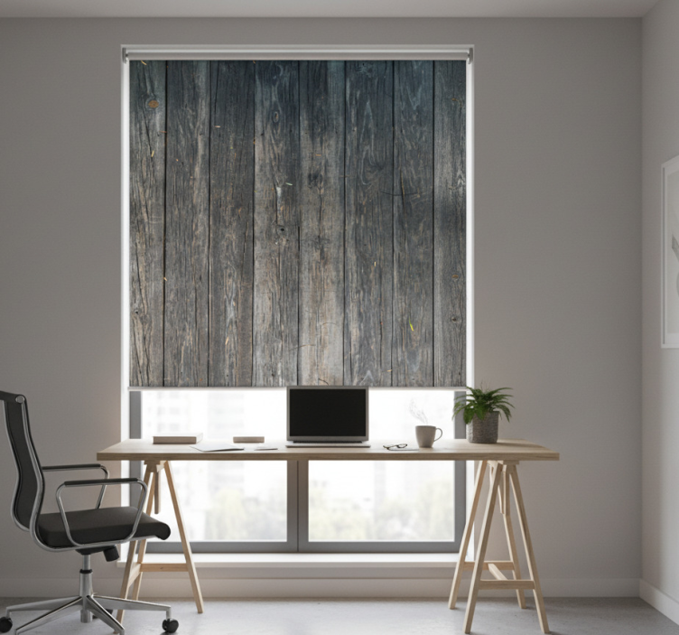 Reference: E7260Introducing our Blind office gray distressed rustic design, a stunning addition to any workspace! This design features a unique blend of rustic charm and modern sophistication, characterized by its distressed gray finish that adds character and warmth to your office. Perfectly crafted for those who appreciate style, this blind offers easy assembly in just 2 clicks, simple cleaning, and the convenience of disassembly in the same manner. It effectively protects your room from direct sunlight and enhances privacy when lowered, ensuring your workspace remains comfortable and secure. Experience the perfect balance of aesthetics and functionality!