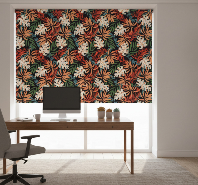 The Blind office tropical plants jungle vibe blind office is the perfect choice for those seeking a unique and refreshing way to decorate their space. This product transforms ordinary offices into extraordinary havens of inspiration. By incorporating this roller blind, you invite the beauty of the outdoors into your workspace while maintaining privacy and functionality. It enhances the room's ambiance, making it an ideal backdrop for productivity and creativity!