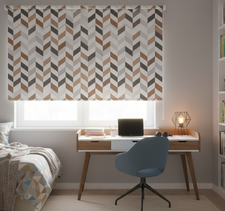 Reference: E7405Introducing our stunning Blind teens abstract chevron pattern, a mesmerizing design that combines vibrant colors and bold geometric shapes to create a visually captivating piece. This roller blind is perfect for adding a touch of modern elegance to any space, featuring easy assembly in 2 clicks, effortless cleaning, and quick disassembly, all while providing privacy and regulating room temperature. This design offers security by allowing you to see outside without being seen, ensuring both style and functionality!