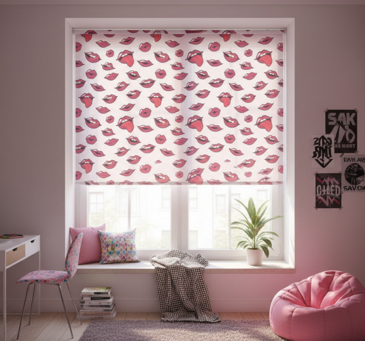 Reference: E7440Introducing our stunning Blind teens abstract lips and tongue design, a vibrant and artistic representation that will elevate the ambiance of any space! Featuring an eye-catching abstract pattern of lips and tongue, this roller blind artfully combines contemporary style with a playful twist, making it perfect for any room. Its unique design not only serves as a decorative piece but also meets practical needs, ensuring your space feels cozy and inviting.