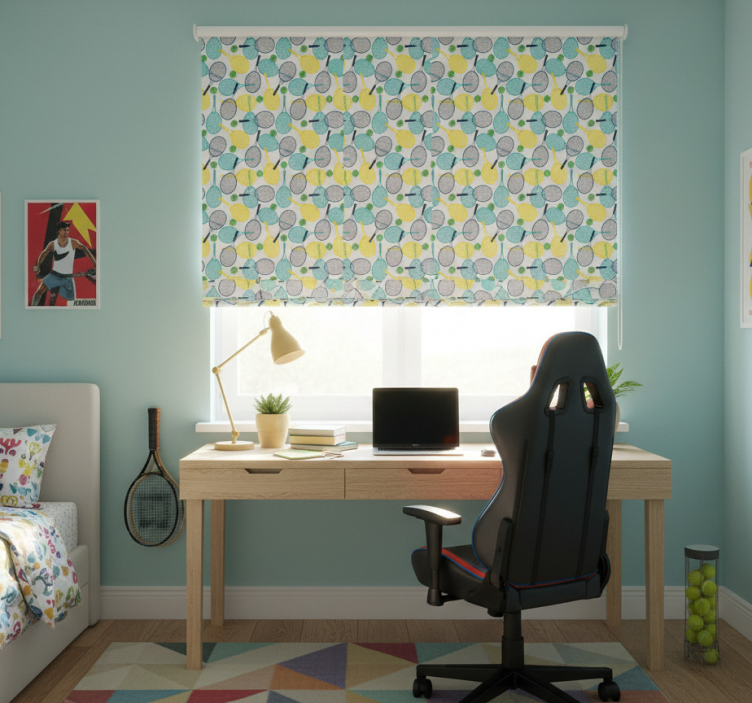 Reference: E7485Introducing our stunning Blind teens colorful racket patterns, a vibrant and playful design that brings joy to any space! This roller blind features an array of colorful racket patterns that are sure to capture attention. The design is both eye-catching and fun, making it perfect for any room where creativity and energy are welcomed. With easy assembly in just 2 clicks, easy cleaning, and customizable textures, this product is a fantastic choice for enhancing your decor!