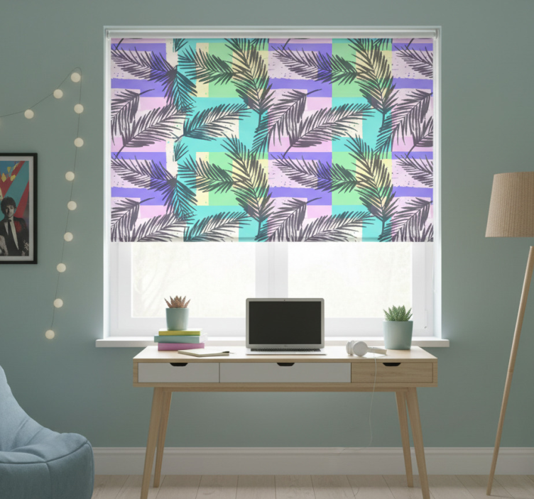 Reference: E7462Introducing our stunning Blind teens tropical palms on squared background, a vibrant design that brings the beauty of tropical landscapes right into your home! With its lush palm motifs and a modern squared background, this roller blind effortlessly combines style and functionality. The design features easy assembly in just two clicks, making it a breeze to install and disassemble. It is also easy to clean, ensuring that your living space remains fresh and inviting. This roller blind not only protects your room from direct sunlight but also enhances your privacy when lowered, allowing you to enjoy your space without being seen!
