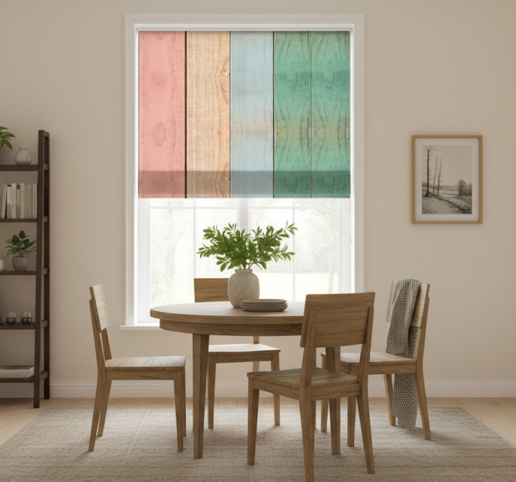 Dining room blind with colorful wooden texture planks