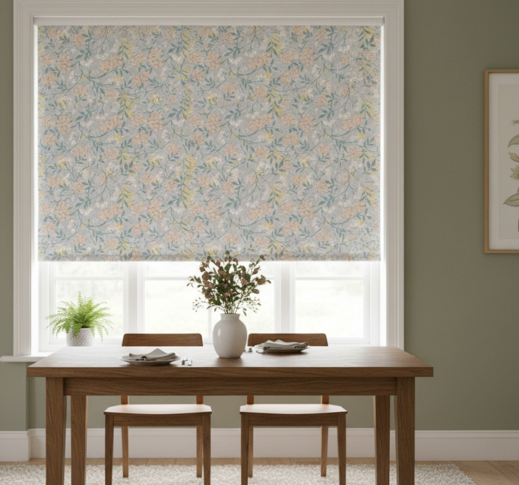 Dining room blind with elegant 80's floral pattern