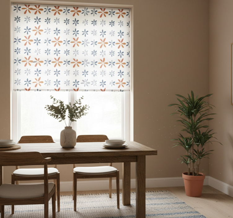 Dining room blind with floral geometric patterns