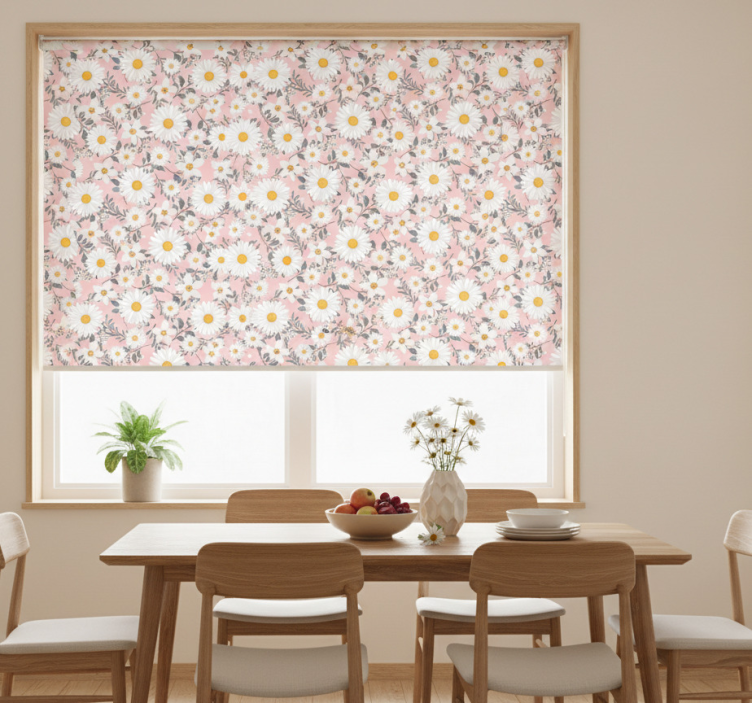 Dining room blind with pink background daisy flowers