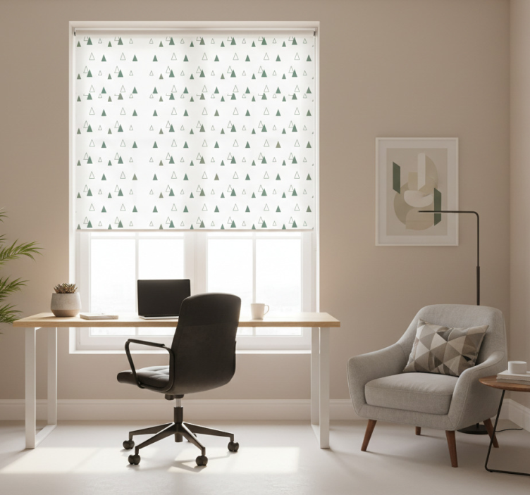 The Home office blind in triangular nature colors home office blind is not just a window covering; it’s a statement piece that inspires creativity and tranquility. Imagine working in a space where the colors reflect the serenity of nature, creating a calming atmosphere that boosts productivity. This blind improves your room's decor while serving practical functions like regulating temperature and ensuring privacy, making it a perfect addition to any stylish home office!