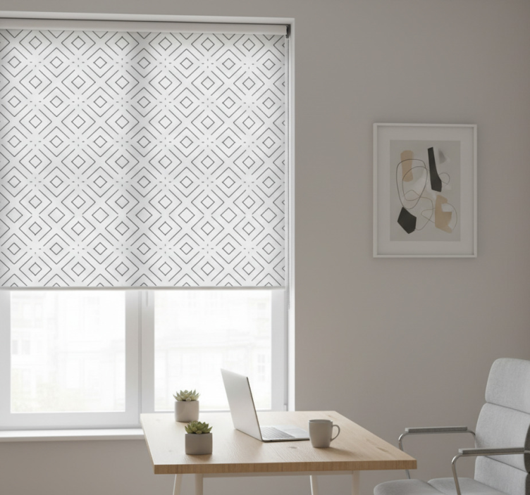 The Home office blind with white geometric pattern home office blind is not just a window treatment; it is a statement piece that inspires creativity and focus in your workspace. Its sleek design complements various interior styles, making it an ideal addition to your home office. Imagine working in a space that not only looks great but also feels comfortable and inviting! Let your personality shine through with this exceptional roller blind that enhances your productivity and decor.