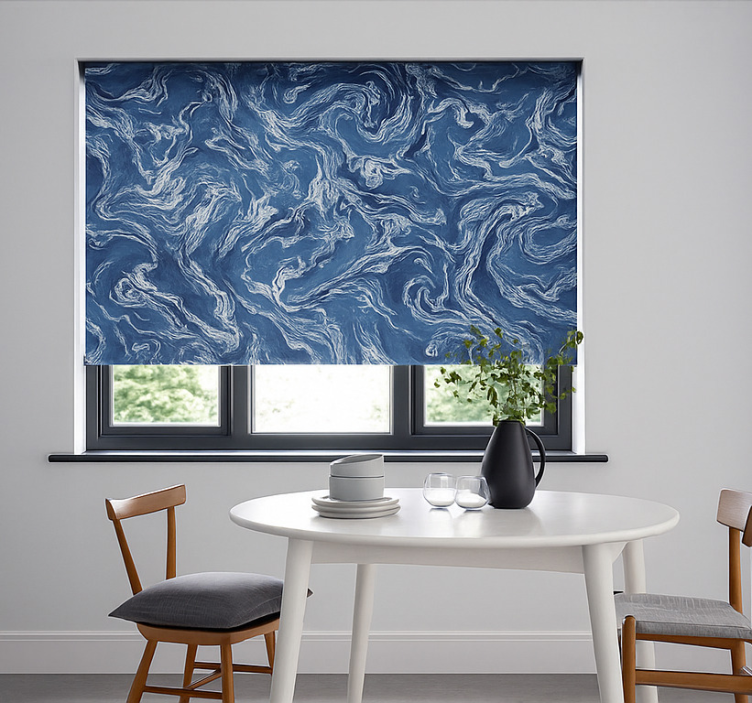 Reference: E5867The Indigo Marble Abstract blind teens features a stunning design that beautifully blends deep indigo hues with abstract marble patterns, creating a captivating visual effect. This roller blind elevates any space with its modern aesthetic while offering practical benefits such as easy assembly and disassembly in just two clicks, effortless cleaning, and protection from direct sunlight. It also provides privacy and helps regulate room temperature, making it a perfect addition to a stylish yet functional room!