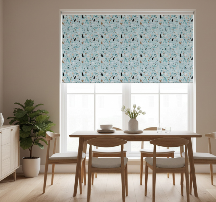 The Light blue terrazzo effect dining room blind dining room blind is an exceptional choice for elevating your home decor. Its eye-catching design seamlessly integrates with various interior styles, making it a versatile addition to your space. Imagine enjoying your meals in a beautifully lit ambiance, where the elegance of the terrazzo effect creates a harmonious atmosphere. This roller blind not only enhances your dining room's appeal but also ensures your privacy and comfort, allowing you to dine in peace while making a stylish statement!