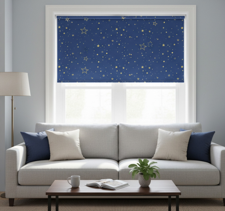 Installing the Modern blind golden stars on blue background modern blind is a breeze! Simply follow our easy two-click assembly process to have your new roller blind up and ready in no time. Enjoy the effortless transformation of your space with minimal hassle!