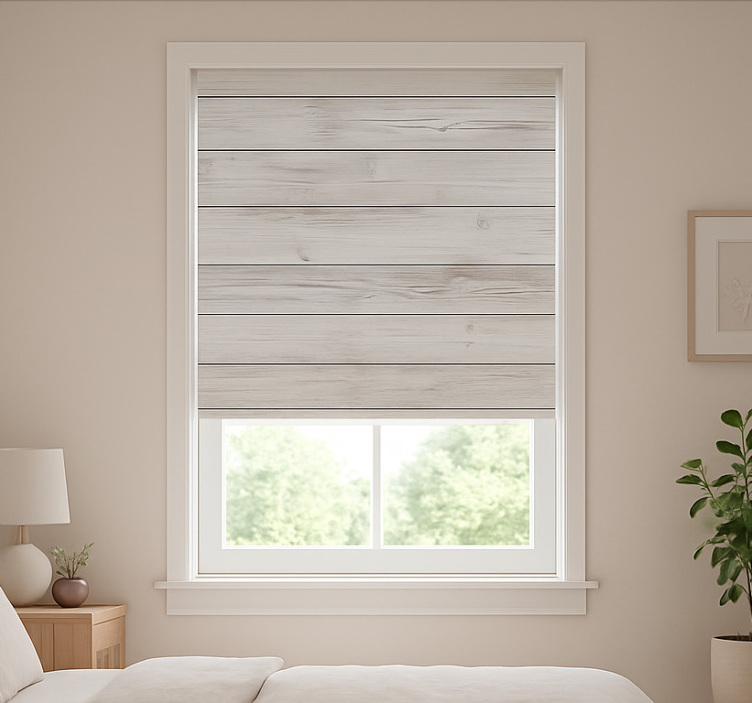 Pattern roller blind horizontal white-washed timber
