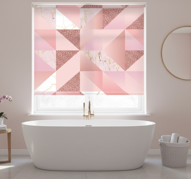 Reference: E6174Transform your bathroom into a luxurious retreat with our Pink golden marble bathroom blind. This stunning design combines elegant pink and golden hues in a mesmerizing marble pattern, creating a sophisticated ambiance. The blind is not only visually appealing but also functional, providing privacy and regulating light effortlessly. Enjoy the beauty of this exquisite roller blind that enhances the overall decor of your space!