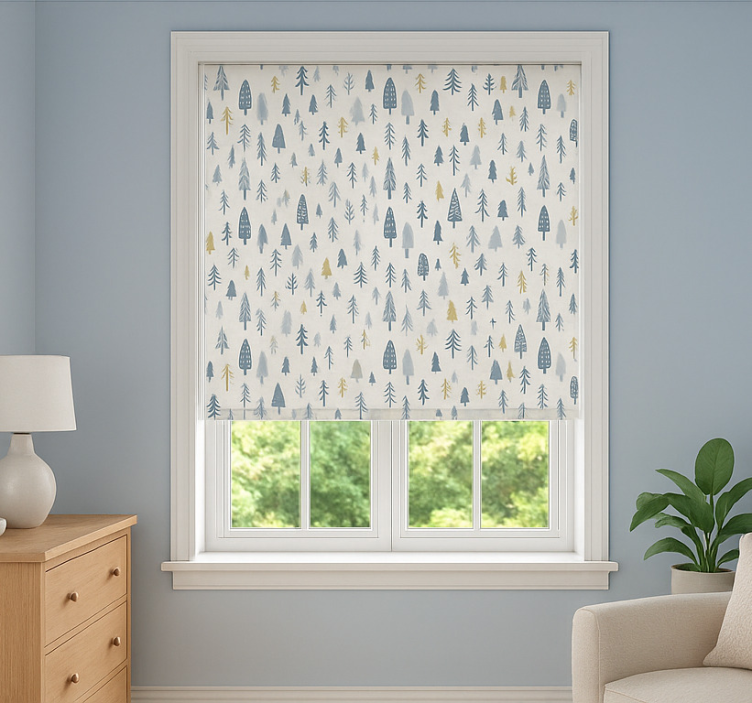 Reference: E6075Experience the serene beauty of nature right from your own home with our Scandinavian blind nordic winter forest view. This stunning roller blind features a picturesque design that captures the essence of a Nordic winter forest, complete with lush trees and soft snowflakes. The graphical representation creates a calming atmosphere, making it the perfect addition to your living space. With easy assembly in just two clicks, effortless cleaning, and the ability to provide privacy while allowing light to filter through, this Scandinavian blind is both functional and aesthetically pleasing!