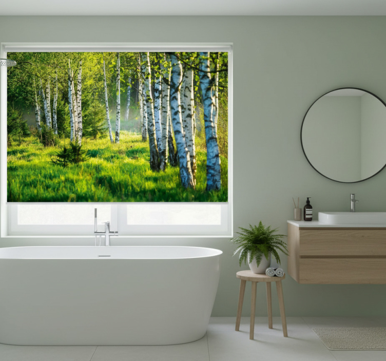 The Tree blind birch grove contemporary tree blind is not just a window covering; it's a statement piece that transforms your interior decor. Imagine the warmth of a birch grove enveloping your room, creating an inviting atmosphere that evokes peace and relaxation. Whether you're looking to update your home or add a splash of elegance to your office, this roller blind effortlessly combines style and functionality. Inspire your guests with a unique design that enhances your space while providing essential privacy and light control!