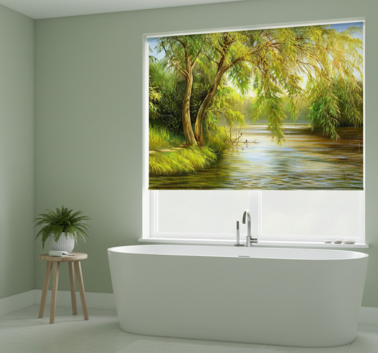 Reference: E6154Introducing our stunning Tree blind serene river willow, a visual masterpiece that brings the tranquility of nature into your home! This beautifully designed roller blind features a serene river and elegant willow trees, creating a peaceful atmosphere that transforms any room into a relaxing retreat. With easy assembly in just 2 clicks, effortless cleaning, and the ability to disassemble quickly, this roller blind is as practical as it is beautiful. It effectively protects your space from direct sunlight while providing the privacy you desire, allowing you to enjoy both comfort and security in your home.