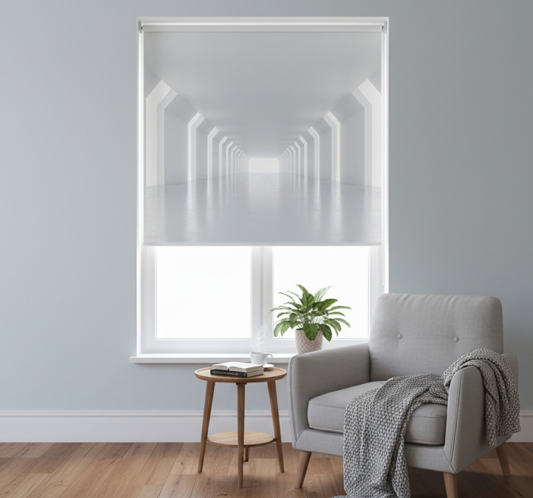 Reference: E8698Transform your living space with the White window blind futuristic corridor view, a stunning addition that seamlessly blends modern aesthetics with functionality. This roller blind offers easy assembly in just 2 clicks, effortless cleaning, and quick disassembly, ensuring that your windows and surroundings remain immaculate. Not only does it protect your room from direct sunlight, but it also provides essential privacy when lowered. With the ability to regulate room temperature and enhance your home's security, you can enjoy the view without being seen. The design is customizable, allowing you to choose from three different textures depending on your desired light and privacy levels, making it a perfect fit for any room!
