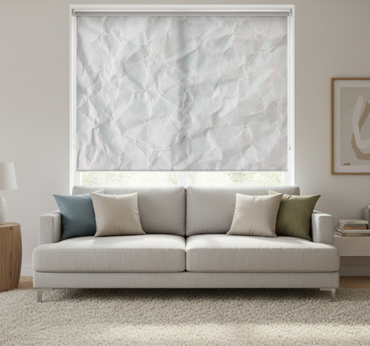 Reference: E8463Transform your space with our stunning White window blind with white crumpled paper texture, expertly designed to combine elegance and functionality. This unique roller blind boasts a delightful crumpled paper texture that adds a touch of sophistication to any room, while ensuring easy assembly and disassembly in just two clicks. Its versatility shines through, allowing you to effortlessly regulate room temperature and enjoy privacy without sacrificing style.