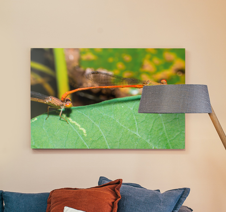 Introducing our stunning Dragonfly canvas pair of dragonflies, a captivating piece of art that truly brings the beauty of nature indoors. This design features intricate dragonflies perched gracefully on leaves, captured in a mesmerizing close-up that highlights the vibrant greens of the outdoors. With its combination of striking photography and the delicate elegance of these insects, this canvas print serves as a perfect reminder of the intricate wonders of the natural world.