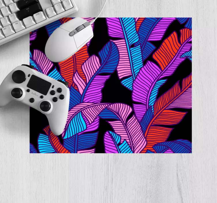 Introducing our Mouse pad pattern lively leaf design, a stunning graphic creation that bursts with life! This vibrant piece features a neon color block design adorned with lush palm leaves and tropical plants, creating a bright and vivid atmosphere for your workspace. The colorful illustration of leaves adds a refreshing touch, making every moment you spend at your desk feel like a day in paradise!
