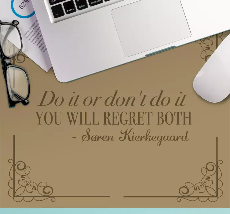 Reference: N4261The design features a powerful quote by Søren Kierkegaard that emphasizes the inevitability of regret, whether one takes action or not. The elegant typographic presentation is framed by decorative elements, making it an inspirational statement piece.