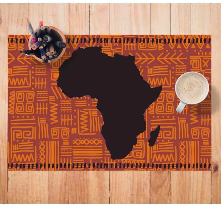 Enhance your dining experience with this trendy and unique Africa map placemat. The tribal pattern textured design adds a modern and interesting look to your dining table, making it a perfect choice for customization.