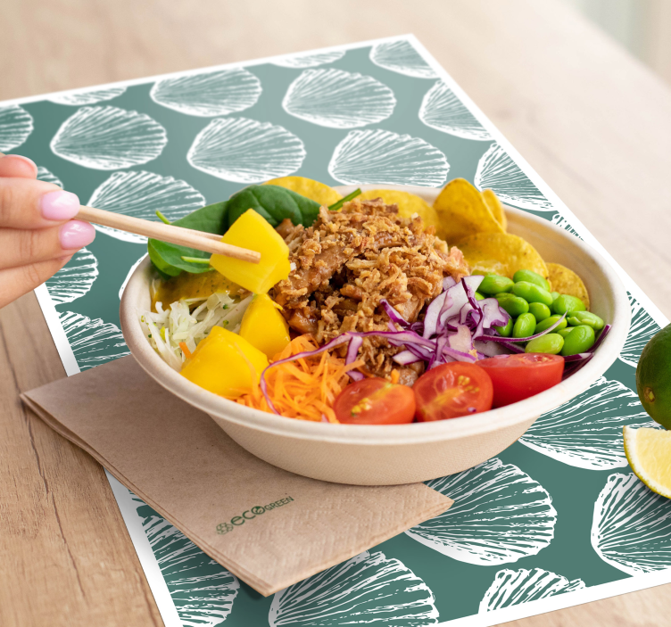 Explore the beauty of the ocean right on your dining table with our Textured placemats shell pattern design. This stunning design features organic shapes inspired by the sea, beautifully capturing the essence of shells and the tranquil green hues of coastal landscapes. The intricate drawing creates a textured pattern that evokes the calming atmosphere of a seaside retreat, making every meal feel like a special occasion!