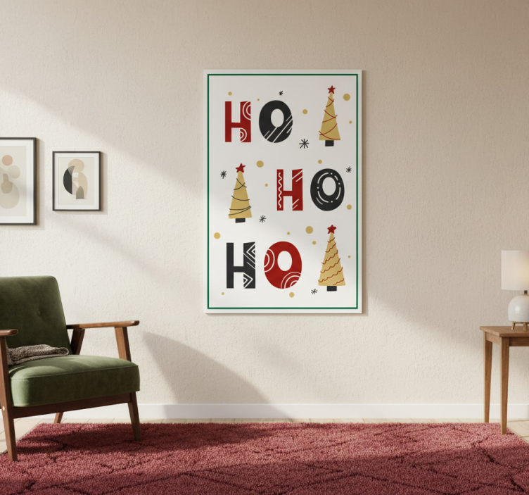 Reference: G1093Introducing our vibrant Christmas poster ho ho ho christmas text design, a delightful addition to your holiday decor! This enchanting poster showcases a festive design with cheerful typography that exudes holiday spirit. With its 180g/m2 grammage, it is perfect for posters, featuring a semi-matt finish that ensures no reflections distract from the high color intensity, making it a stunning focal point in any space.