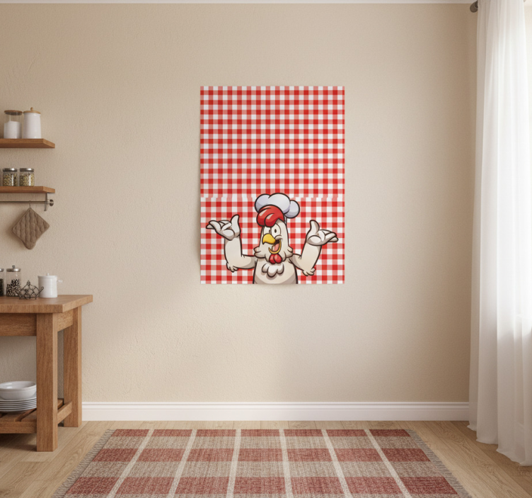 Reference: G646Introducing our delightful Kitchen poster cartoon chicken chef that adds a whimsical touch to your culinary space! This vibrant design showcases a charming cartoon chicken dressed as a chef, featuring a semi-matt finish that minimizes reflections and enhances high color intensity. Crafted on a sturdy 180g/m2 material, this poster is not only visually stunning but also durable, making it an ideal choice for any kitchen decor.