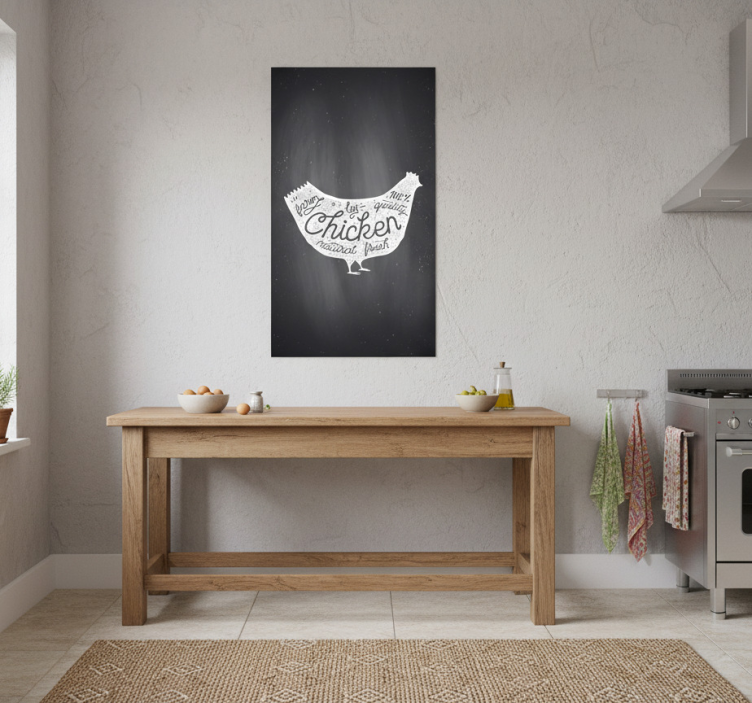 Reference: G649Introducing our stunning Kitchen poster farm fresh chicken art print, a delightful piece of wall decor that brings warmth and character to your kitchen space! This art print features a vibrant design with high colour intensity, printed on a premium 180g/m2 paper that ensures durability and elegance. The semi-matt finish eliminates reflections, allowing you to enjoy the artwork from any angle while adding a touch of rustic charm to your home.