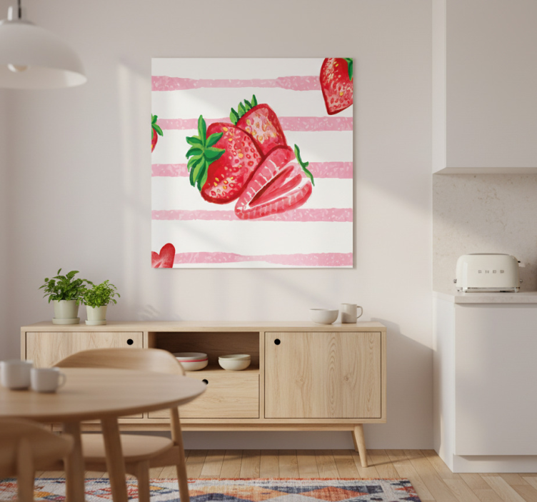 Transform your kitchen into a delightful haven with this Kitchen poster seamless strawberries on striped background kitchen poster. Its playful design not only adds a pop of color but also creates a warm and inviting atmosphere. Imagine the joy of cooking and sharing meals in a space that is as beautiful as it is functional! This poster is a simple yet effective way to uplift your kitchen décor and inspire creativity every day.