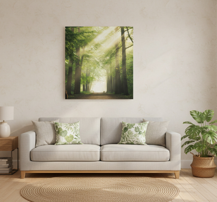 Reference: G802Transform your living space with our stunning Living room poster green forest with the sun. This captivating design encapsulates the serenity of nature, featuring a lush green forest bathed in the warm glow of sunlight. The vibrant colors are printed on high-quality 180g/m2 paper with a semi-matt finish that eliminates reflections, ensuring the artwork stands out beautifully in your home. The high color intensity brings the forest scene to life, making it an ideal choice for those looking to add an element of tranquility and beauty to their decor.