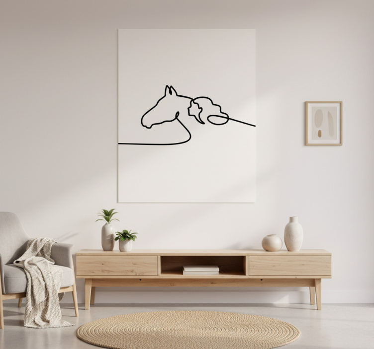 Transform your space with the Living room poster of woman with horses line art living room poster. It's not just a piece of art; it's an inspiration that evokes a sense of harmony and connection with nature. The elegant lines and captivating imagery invite you to pause and appreciate the beauty of life, making it an ideal choice for those looking to uplift their home décor. Let this stunning piece spark joy and creativity in your living room!