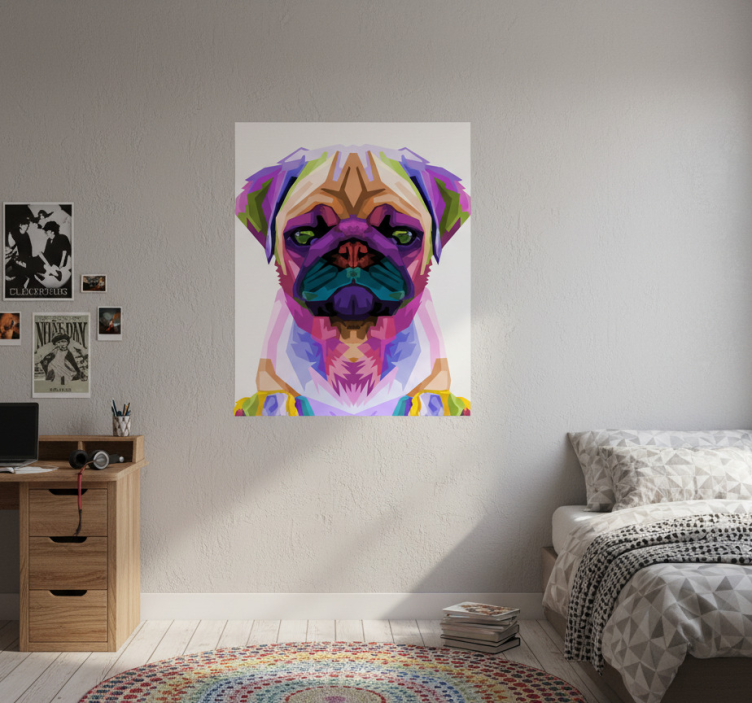 The Living room poster pop art pug living room poster is not just a piece of art; it's a source of inspiration and happiness! Imagine transforming your living area into a joyful retreat with this delightful pug design. Its lively colors and unique style effortlessly enhance the ambiance, making your living room a warm and welcoming space for family and friends. With this poster, you can express your personality and love for pets in a fun and creative way!