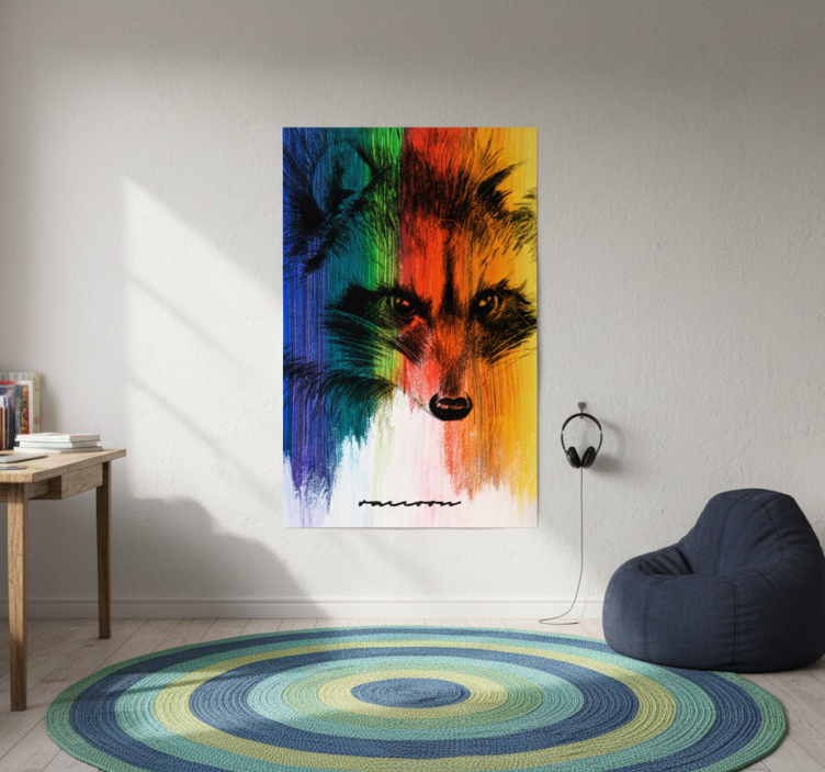 Living room poster rainbow raccoon