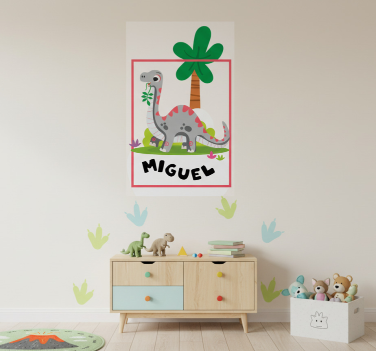 Reference: G963Introducing our stunning Nursery poster gray long neck dinosaur print, a delightful addition to any child's space! This charming design features a whimsical long neck dinosaur in shades of gray, creating a serene and inviting atmosphere. The poster is crafted with a semi-matt finish that ensures high color intensity without reflections, making it perfect for brightening up your nursery walls. With a grammage of 180g/m2, this poster is ideal for long-lasting display!