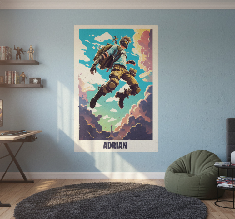 Reference: G732Introducing our Teenager poster of epic character with custom name, a vibrant addition to any young person's space! This eye-catching design features striking graphics, showcasing a unique character that resonates with teenage interests while allowing for a personal touch with a custom name. Printed on high-quality 180g/m2 paper with a semi-matt finish, the poster boasts high color intensity that brings every detail to life without reflections, making it a perfect centerpiece for any room.