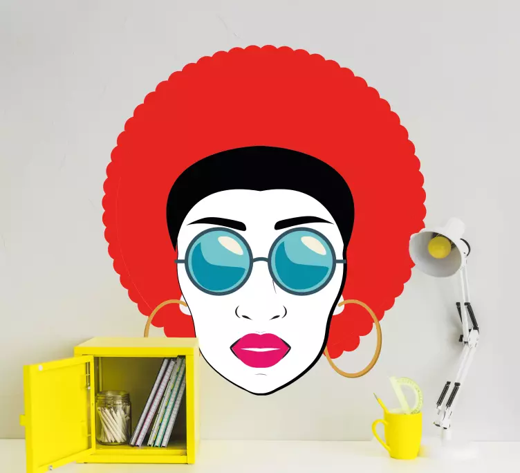 Introducing our vibrant Bold afro portrait wall sticker, a stunning illustration that captures the essence of femininity and style. This design features a confident woman with a beautiful afro, stylish sunglasses, and colorful accessories, making it a perfect statement piece for any space. The playful colors and bold lines create an eye-catching portrayal that can uplift the ambiance of your home or office!