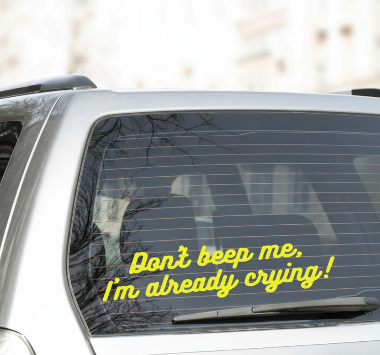 The Car sticker don't beep i'm crying car sticker is more than just a decorative piece; it’s a statement of individuality! This sticker adds a touch of personality to your vehicle, transforming it into a canvas of self-expression. Whether you're driving around town or parked at your favorite spot, this sticker serves as a conversation starter, drawing smiles and laughter from those who see it. Let your car reflect your mood and style in a fun and creative way!