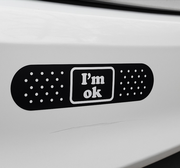 Reference: A53900Introducing our vibrant Car sticker I'm okay band-aid, designed to bring a splash of personality to your vehicle! This unique design features a playful band-aid graphic, combining bold colors and a cheerful message that expresses positivity. Perfect for anyone looking to add a touch of fun to their car, this sticker is more than just an accessory; it's a statement!