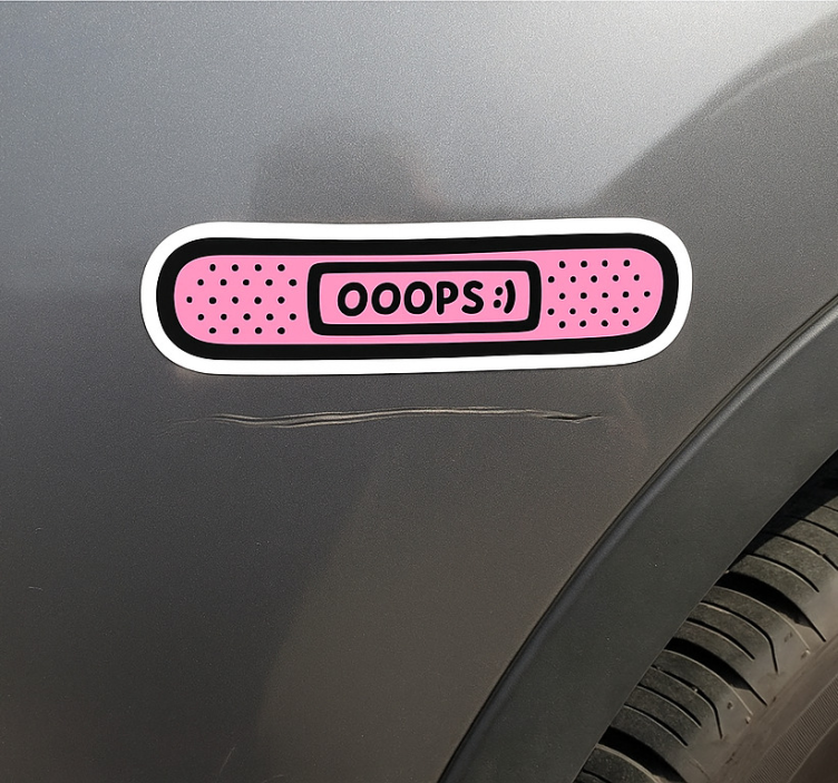 Car sticker pink "oops" band-aid