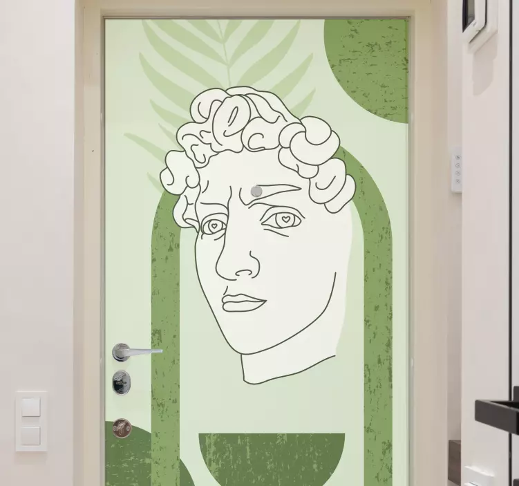 Transform your living space with our stunning Contemporary face artwork door sticker. This unique adhesive features a captivating design inspired by the iconic David statue, rendered in minimalist line art. The modern design embraces soothing green tones and abstract shapes, making it a perfect addition to any door that needs a touch of elegance and creativity. Enhance your home decor effortlessly with this eye-catching piece!