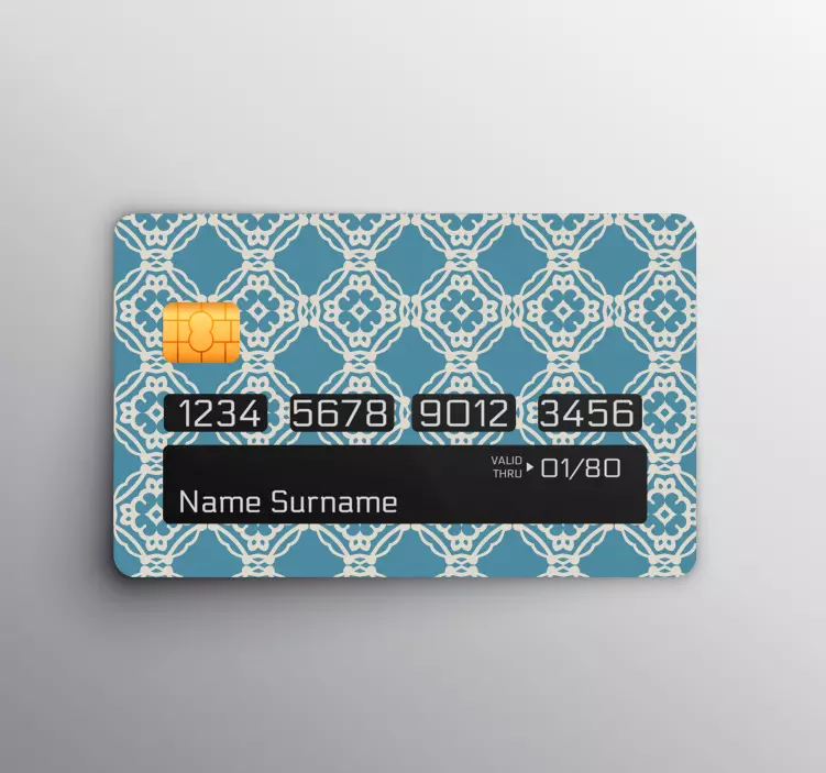 Introducing our credit card sticker with stylish patterns, designed to elevate your financial accessories with an artistic twist! The graphic design features a stunning blend of antique and ornamental elements that create a mesmerizing geometric pattern in shades of blue. This texture not only enhances the aesthetic of your credit card but also offers a unique personalized touch. Ideal for those who appreciate style and want to stand out while managing their finance.